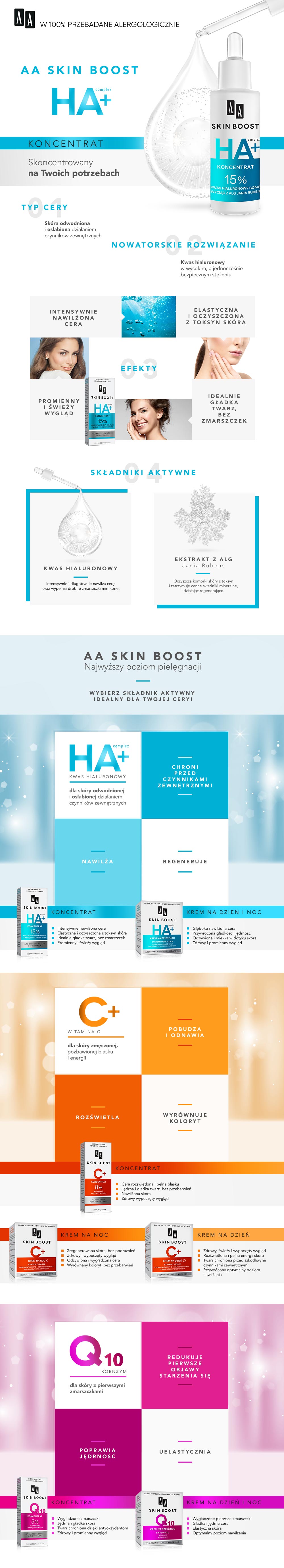 AA Skin Boost Koncentrat z koenzymem Q10 i wyciągiem z BIO malin stanowi aktywną kurację opóźniającą starzenie i wygładzającą, wzmacniającą działanie kremów do codziennej pielęgnacji skóry.